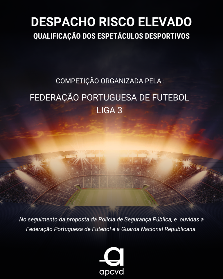 Despacho que qualifica o jogo de Risco Elevado na competição organizada pela Federação Portuguesa de Futebol para a modalidade de Futebol 11 – Liga 3.
